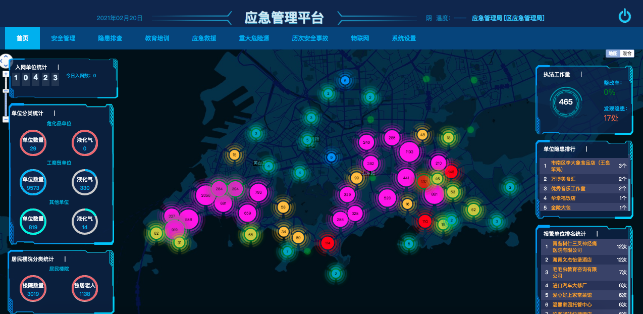 為配合上合峰會的順利開展,排查轄區(qū)各類安全隱患,建立網(wǎng)格化應急管理平臺——青島市市南區(qū)應急管理平臺,記錄網(wǎng)格員提報的各項事件,掌握轄區(qū)的人、事、地、物、情,為峰會的開展提供安全保障。