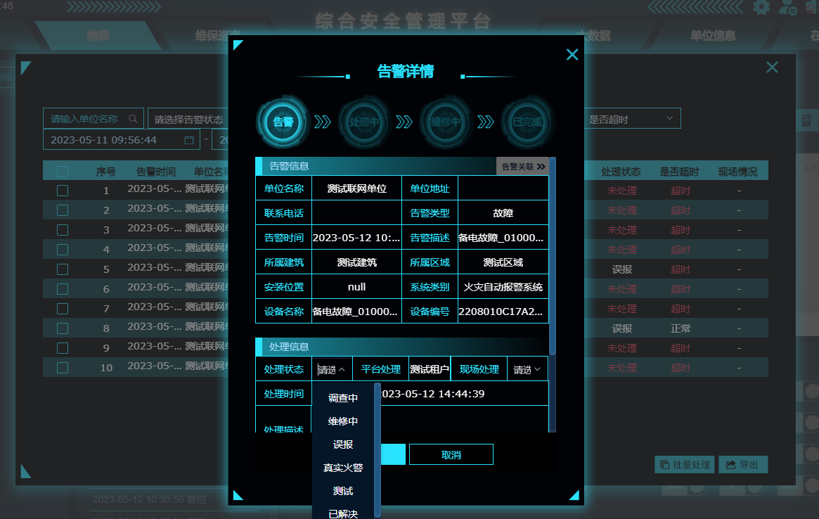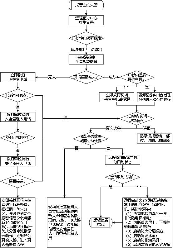 消防控制室值班機器人系統還具有消防遠程聯網功能,實時接收、解析、顯示、上傳報警主機的報警信息到平臺,根據接收到的信息類型對火災自動報警控制器進行自動操作:平臺遠程值班人員只需要點擊相應按鈕即可一鍵處置,值班機器人將立即按照預設邏輯主動對主機進行各種操作,如復位報警主機、切換手自動狀態等。