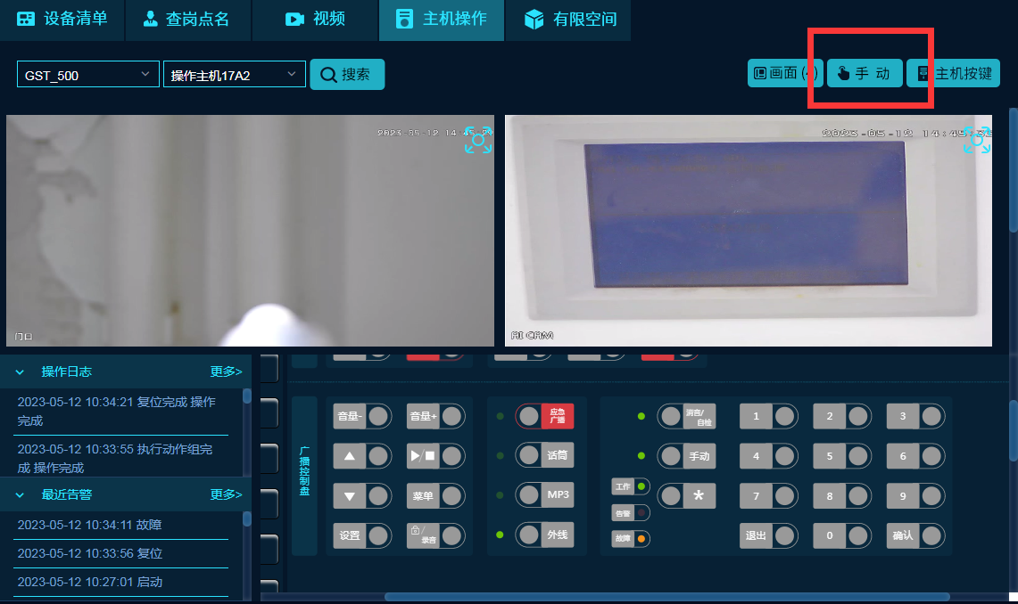 將報警主機全按鍵精準復刻至平臺,包括名稱、大小、形狀、顏色,實現一鍵對應遠程操控。通過消控室機器人執行對應按鍵點擊操作,平臺端即可遠程全面控制報警主機。高清攝像頭同步直播操作實況與主機畫面,確保操控精準無誤。
