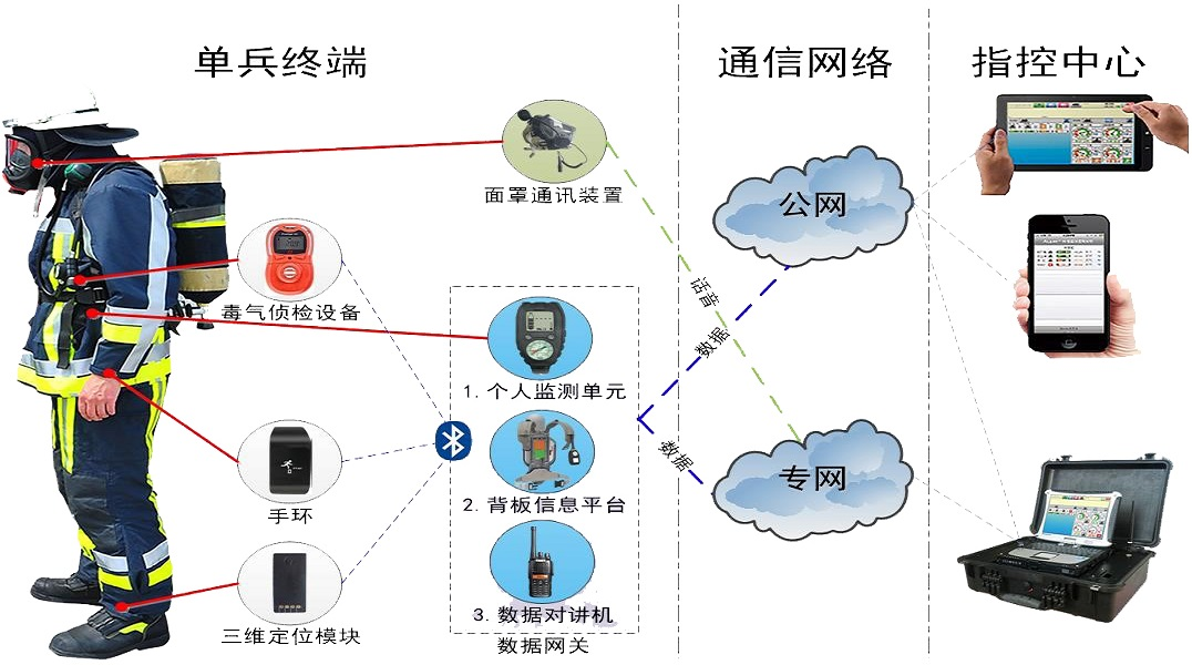 定位+心率+空呼+有害氣體監測多系統聯動設計,實現消防戰士空呼氣瓶壓力監測、剩余氣量顯示,及時提醒消防戰士及現場指揮員,實現消防戰士空呼氣瓶壓力監測、剩余氣量顯示,及時提醒消防戰士及現場指揮員。設備具有以下特點: