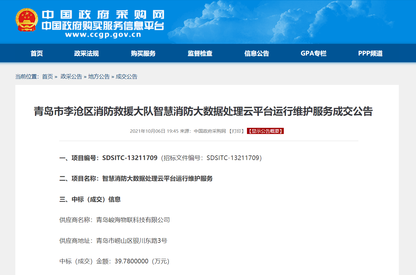 中國政府采購網:http://www.ccgp.gov.cn/cggg/dfgg/cjgg/202110/t20211006_16974121.htm