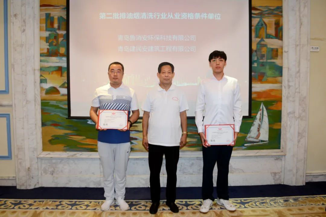 鄭海申會(huì)長(zhǎng)為獲得第二批排油煙清洗行業(yè)從業(yè)資格條件的單位頒發(fā)證書