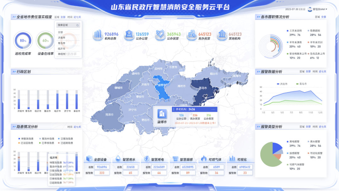 截至目前,由峻海物聯建設運營的“山東省民政廳智慧消防安全服務云平臺”已實現全省覆蓋,為16個地市、超過3000家養老機構提供著實時、高效的消防安全綜合監管服務。