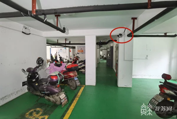 在樓房架空層的非機動車庫,每輛電動車車位前都對應一個充電電源,避免了私拉電線、電線裸露等安全隱患。此外,車庫還安裝了明火探測器及監控,一旦探測到明火就會發出報警,并自動啟動視頻錄制功能。