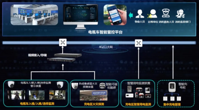 4.管理平臺。峻海物聯采用安消一體機平臺,功能模塊化部署,具備視頻監控系統管理模塊,對前端攝像機、網絡硬盤錄像機等設備進行統一視頻管理和報警管理,可支持大量高清攝像機實時顯示、云臺控制,錄像操作、回放等功能。同時,可通過手機APP進行電瓶車入梯事件的遠程預警接收。