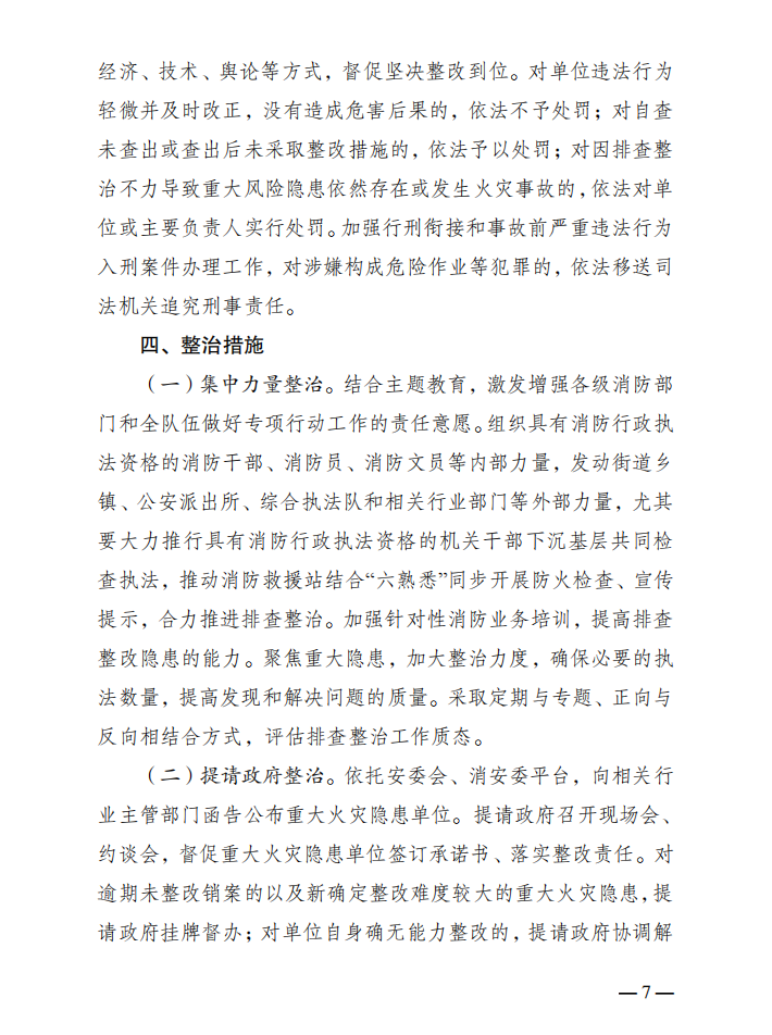 消防安全重大風險隱患專項排查整治行動工作方案